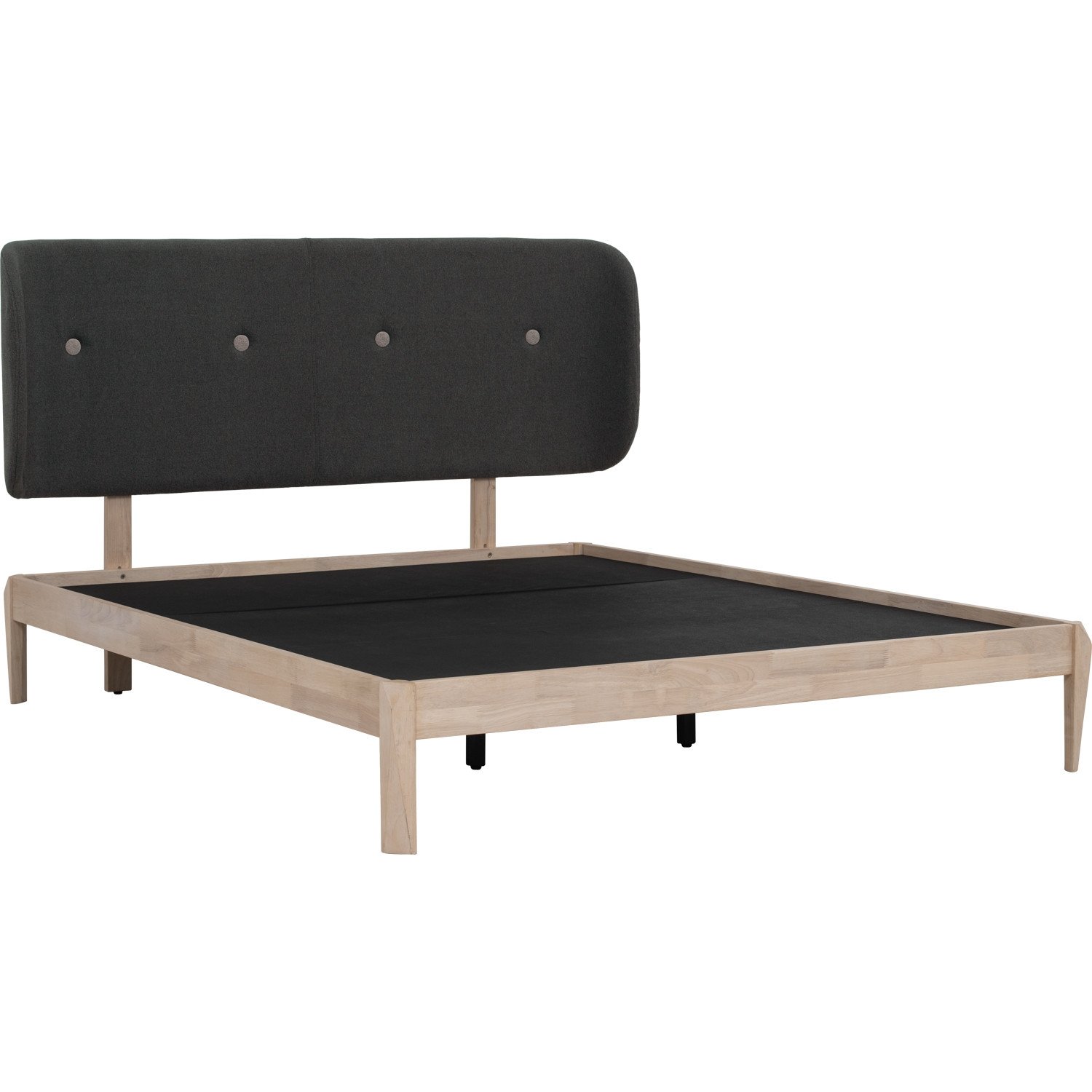Kaiji Queen Bed with White Wash colour leg, Dark Grey colour Bruta fabric headboard and Beige colour Bruta fabric buttons (Fit mattress : 1520mm x 1930mm-Bed panel). The Kaiji Queen Bed with 1900mm bed panel blends Mid-Century Modern design with minimalist charm. Built with Malaysian oak legs and frame, it ensures lasting durability and natural appeal. The headboard, crafted from bentwood and upholstered in Dark Grey Bruta fabric, features beige button detailing for added character. A sturdy MDF base provides reliable mattress support, while the proportions fit a 1520 x 1930mm mattress perfectly.The white-wash finish on the frame adds lightness, creating a refreshing contrast with the darker fabric. Stylish yet practical, Kaiji is ideal for modern bedrooms that balance elegance with everyday functionality.