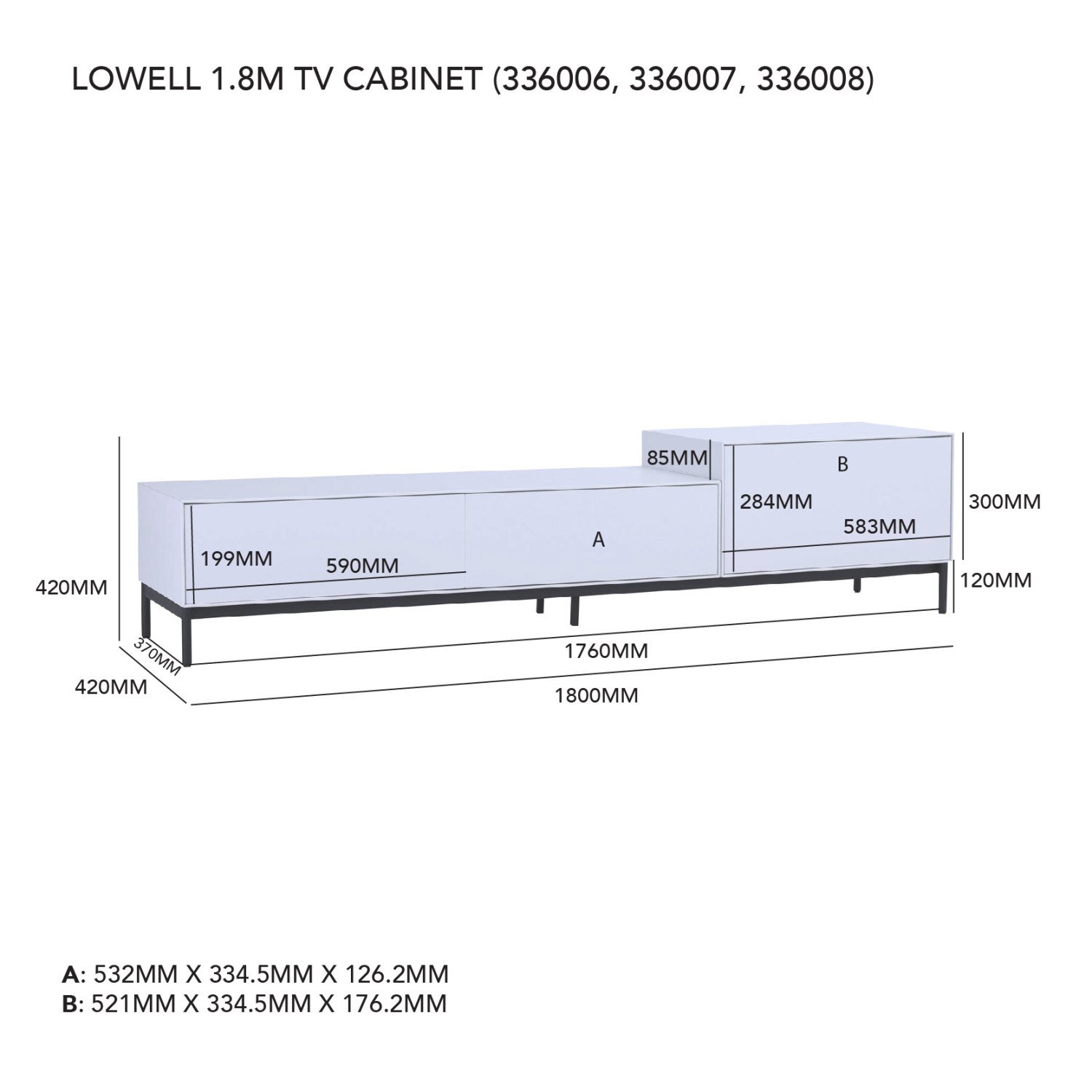Dimension (mm): W1800 D420 H420