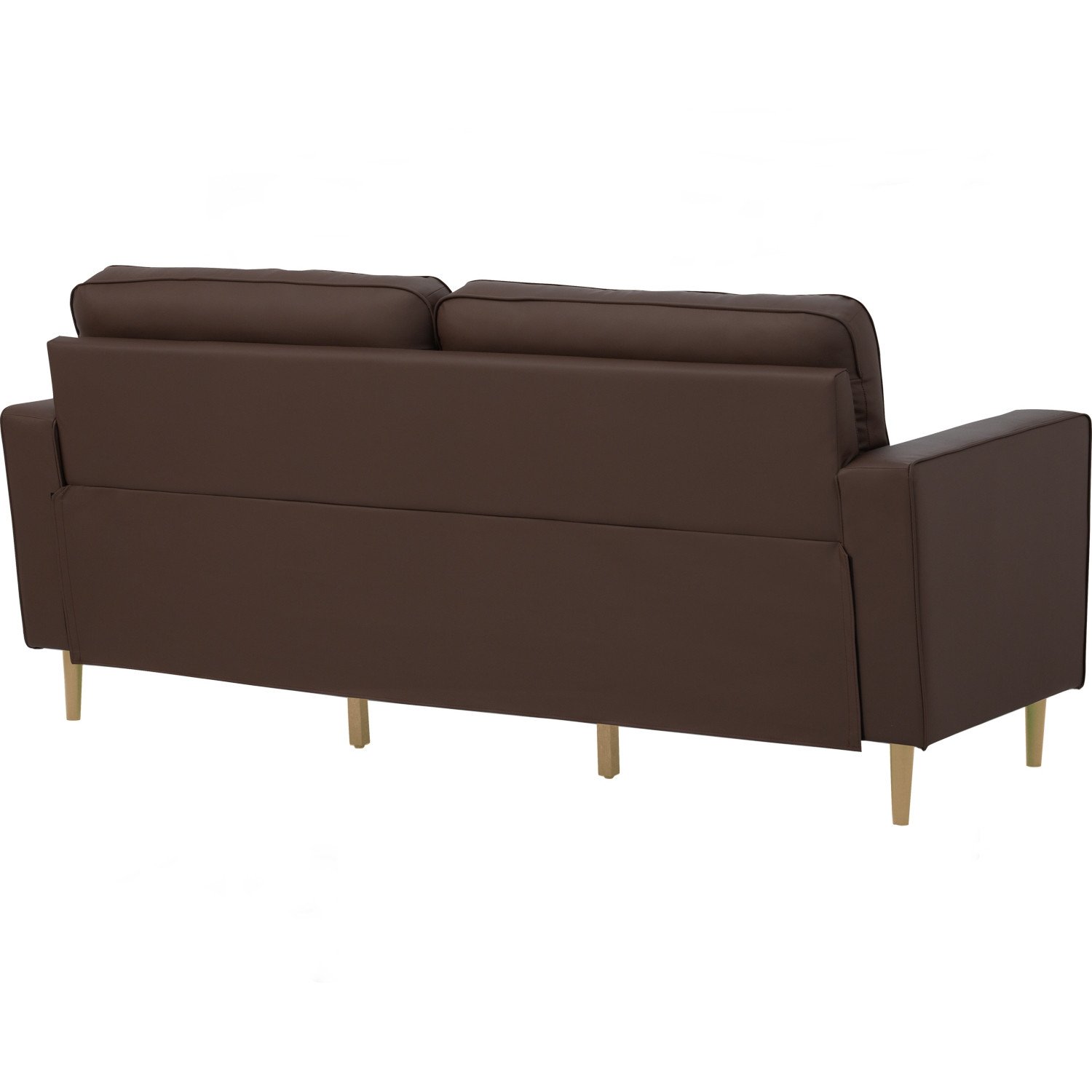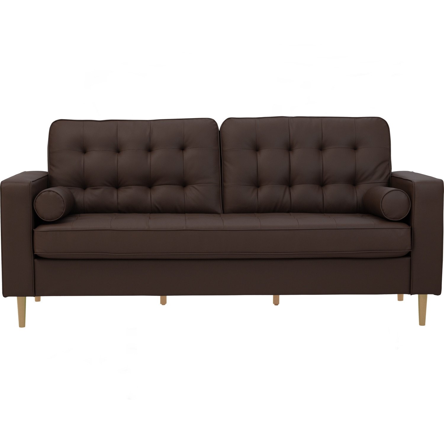 Royce 3 seater sofa in Natural colour leg, Mocha colour Premium Vinyl body. The Royce 3 Seater Sofa blends Mid-Century Modern character with Contemporary comfort. Constructed with Malaysian oak, its solid wood frame ensures durability. Upholstered in premium mocha vinyl, it is both stylish and practical. Natural oak legs add warmth and contrast to the design. The sofa’s balanced form offers excellent support for daily lounging. With its sleek silhouette, Royce suits both classic and modern interiors. The rich mocha tone enhances its inviting presence. A dependable and elegant sofa for versatile use.