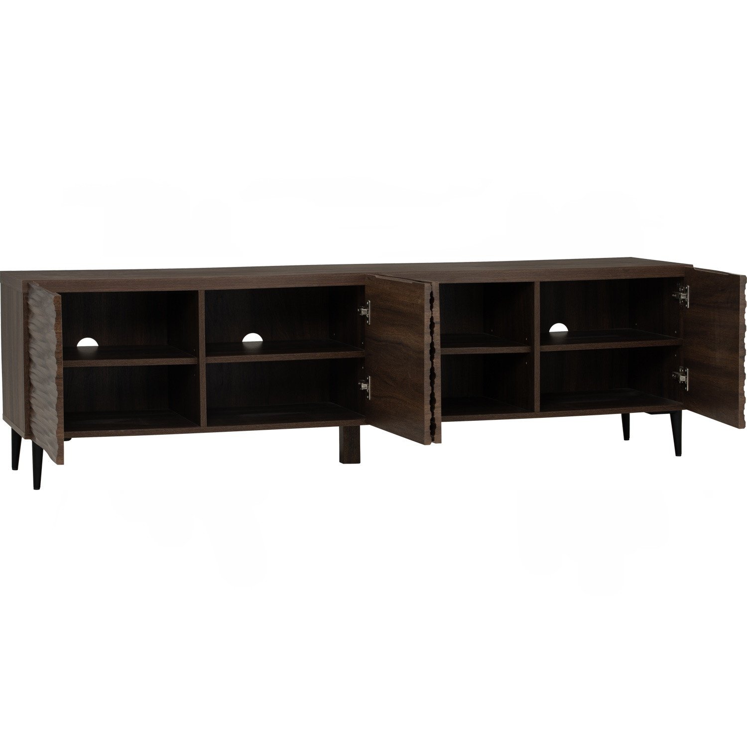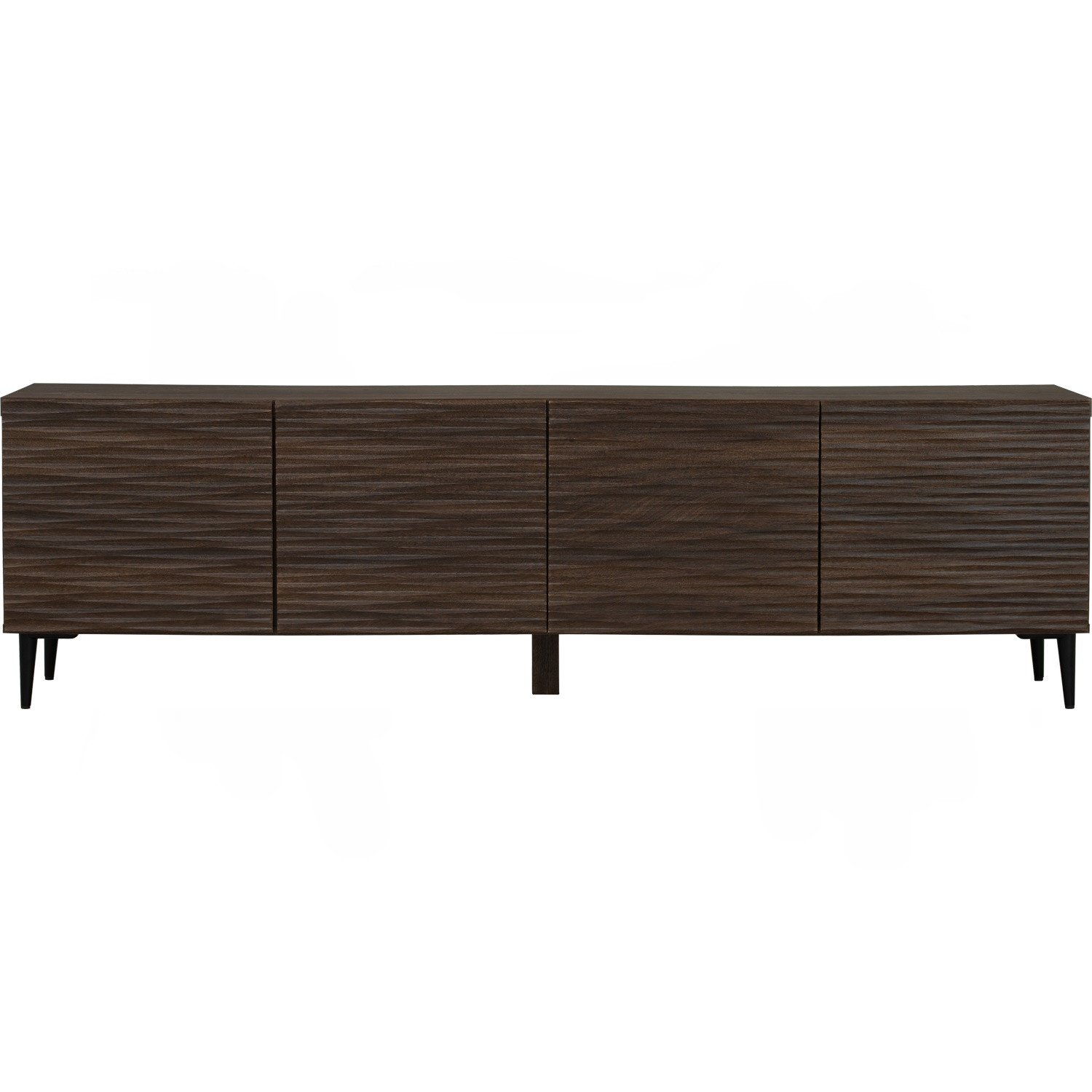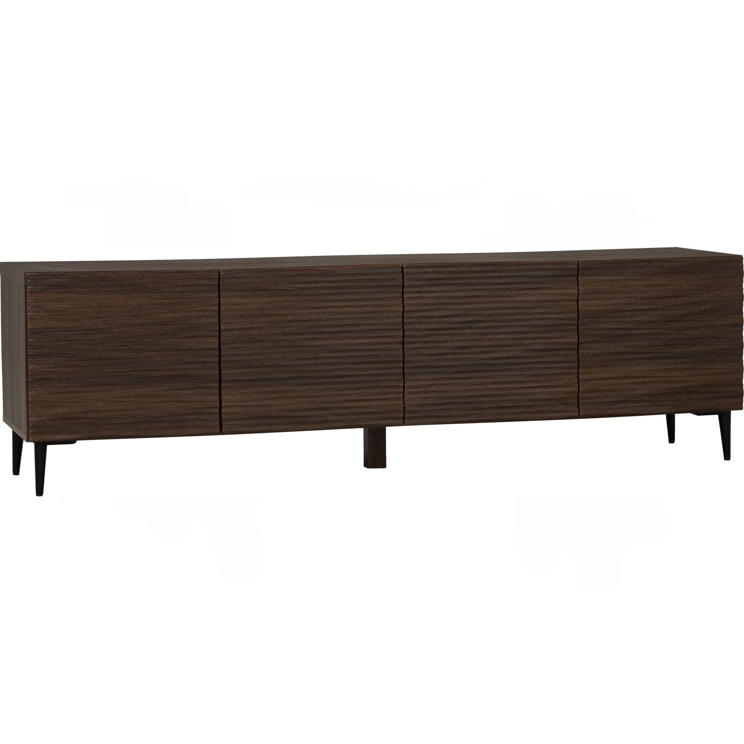 Toba 1.8m tv cabinet in Matt Black Epoxy colour leg, Dark Walnut colour body