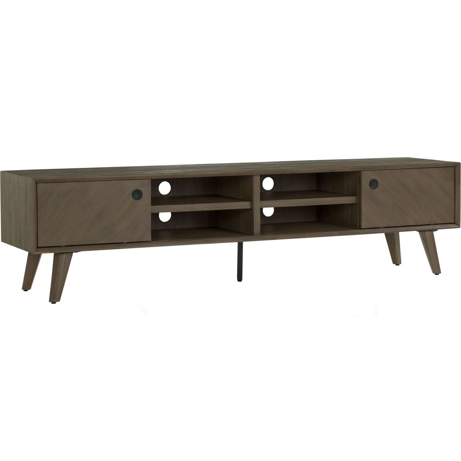 Torrell 2.0M TV Cabinet in Woodline Mocha colour. The Torrell 2.0M TV Cabinet reflects Contemporary design, offering sleek proportions and a sophisticated finish. Built with durable Malaysian Oak legs and an MDF body wrapped in acacia veneer, it showcases the natural beauty of Woodline Mocha tones. Its elongated structure provides ample storage space, keeping living rooms tidy and functional. The smooth veneer surface highlights its premium craftsmanship while ensuring durability for everyday use. Versatile enough to complement both modern and transitional interiors, the Torrell Cabinet combines elegance with practicality, making it a refined centerpiece for sophisticated homes.